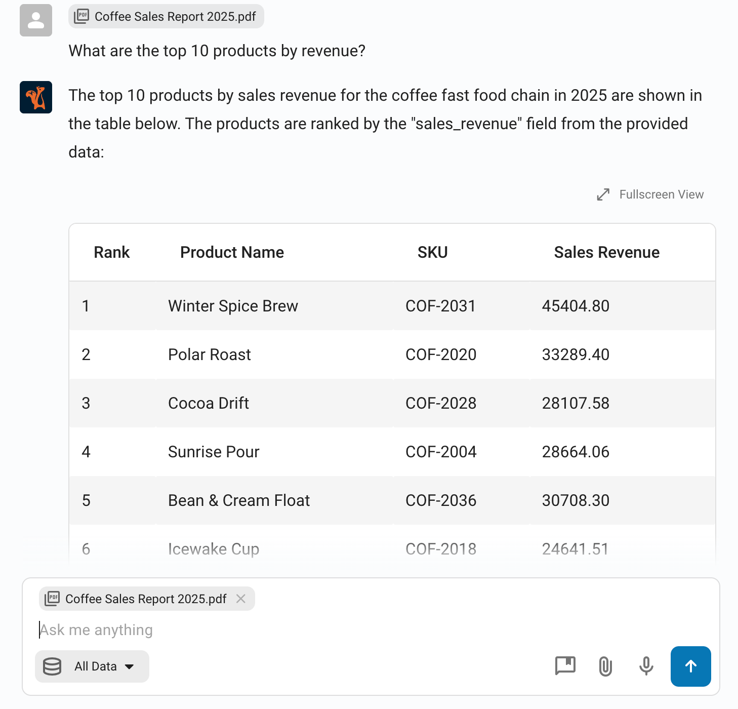 User: Uploads "Coffee Sales Report 2025.pdf"